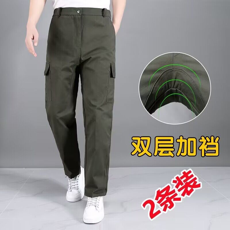 大码弹力工作裤男加肥加大纯棉劳保工作服裤子耐磨宽松春秋工装裤